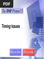 What %e are doing is actually loo)ing at the irst derivative #slope o the tangent& at di erent locations #'his is actually given as appro!imation in the irst e8uation o page 11&$ When the slope is (ero, %e )no% that it is either a ma! #or min<<<&$ 'he symmetry o matched iltering help at this point$& We can summari(e the implementation o this part as ollo%s$ ;irst %e have to generate early, late and ontime gates # as in E8uation #2&, page 11&$ 'hen %e subtract, late gate rom early gate and multiply by the ontime gate$ Remember that the lab manual suggest you to use / as the : value$ 'his e8uation is actually trying to tell you that, you are minimi(ing =late gate part energy> ? =early gate part energy>$ @o start %ith a good guess #initial o set value, this is an indirect approach&$ 'he initial o set value should be %ithin the irst symbol # or accuracy&$ 'hen i the e8uation output #energy di erence& rom irst guess is positive, you shi t the o set to the right$ I the energy output rom the irst guess is negative, you shi t to the le t$ Aou )eep doing this until you ind %hen they are e8ual #ideally&$ 'he real %orld is not ideal so I %ould suggest you to ind a better %ay to get you out o this %hile loop$ Pre Lab 3 /$ () P*S+ @ho% that in the absence o noise, and in E8$ #5& #page 15& do not have any impact on the ma!imum output energy solution$ 5$ () P*S+ What are the t%o critical assumptions used to ormulate the indirect ma!imi(ation o the output energy< Bonsider ho% the presence o the lat ading channel *WC7 can impact this method$ @peci ically, using at least one o the critical assumptions, e!plain ho% you might mitigate the impact o these impairments by suitable selection o parameters$ 0$ () P*S+ * ter do%nsampling a se8uence originally sampled at rate / /Tz by a actor M, %hat is the sample period o the resulting signal< 2$ (,0 P*S+ Cenerate LabVIEW code to estimate the direct ma!imi(ation o the output energy in discrete time and the early?late gate algorithm by using 'able / #yourname-align-.a!Energy$vi& and 'able 5 #yourname-align-ELgate$vi&$ -SE *.E D/0P102 on AN%EL *0 /E*-/N 30-/ IMPLEMEN*A*I0NS" 1$ () P*S+ * ter building align_ !gate."i and align_Ma# nergy."i, place theseVIs into your simulator #i$e$, inside symbol timing."i&$ .odi y the symbol timing recovery method and the delay introduced by the channel rom the ront panel o $imulator."i$ * ter veri ying the unctionality o your code, observe ho% these algorithms per orm in the presence o a narro%band channel %ith *WC7$ a& In the presence o these impairments, observe ho% the pac)et length a ects the per ormance o the algorithms you have implemented$ b& Dsing delay %d 3 4.02Ts and the parameters listed above, plot the timing error statistic &'(, as de ined in E8$ #1&, or oversample actors ' 3 5, 2, E, . . . , 54 #i$e$, even integers up to 54&$ Dse a logarithmic scale or timing error and a linear scale or '$