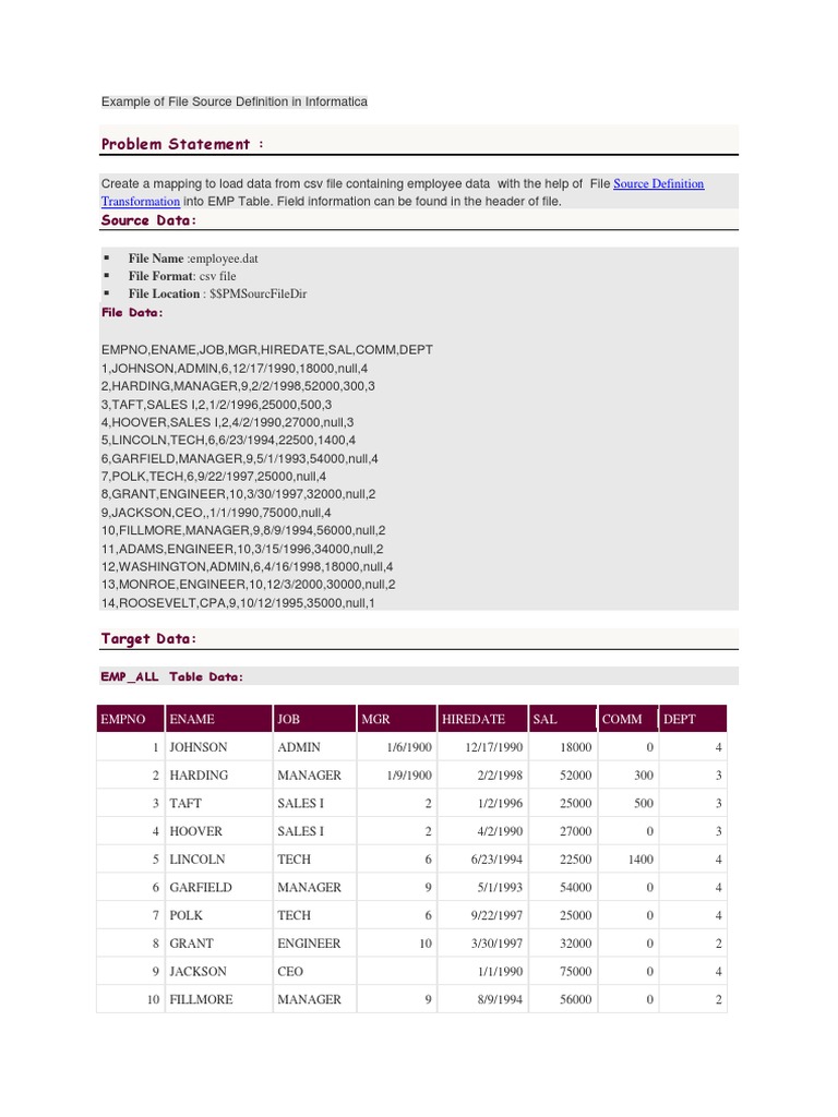 File Name :employee.dat File Format: csv file File Location : $$PMSourcFileDir