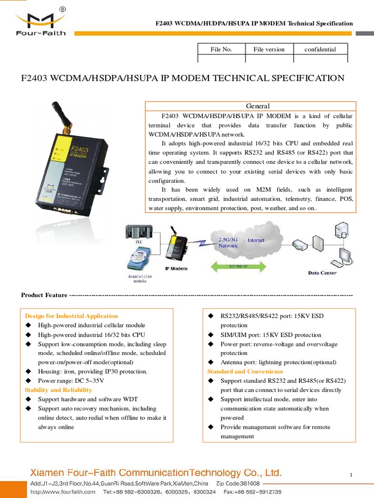 F2403 WCDMA/HUDPA/HSUPA IP MODEM Technical Specification