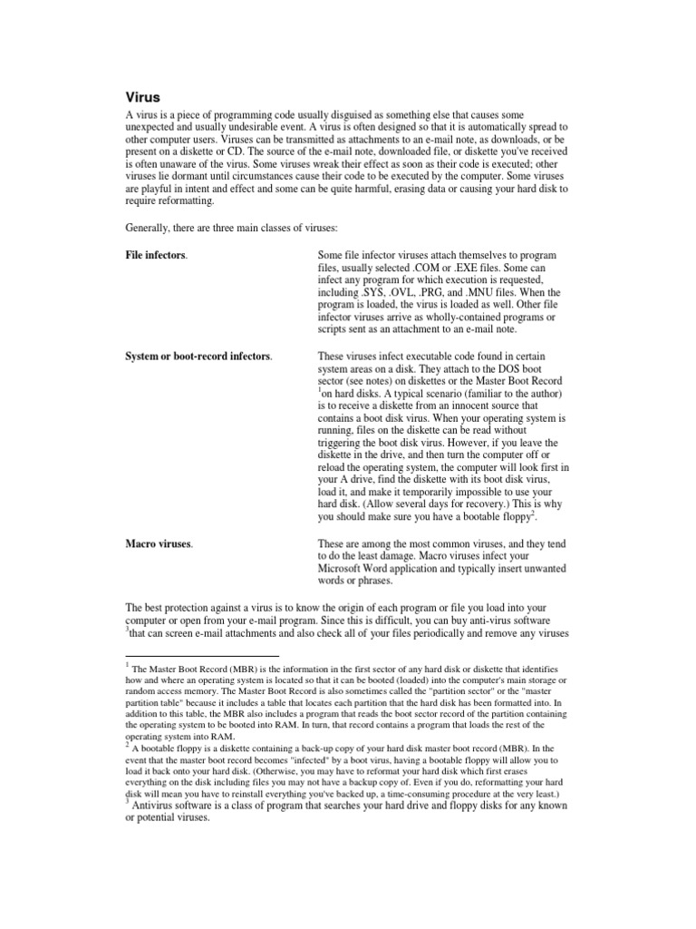 is often unaware of the virus. Some viruses wreak their effect as soon as their code is executed; other