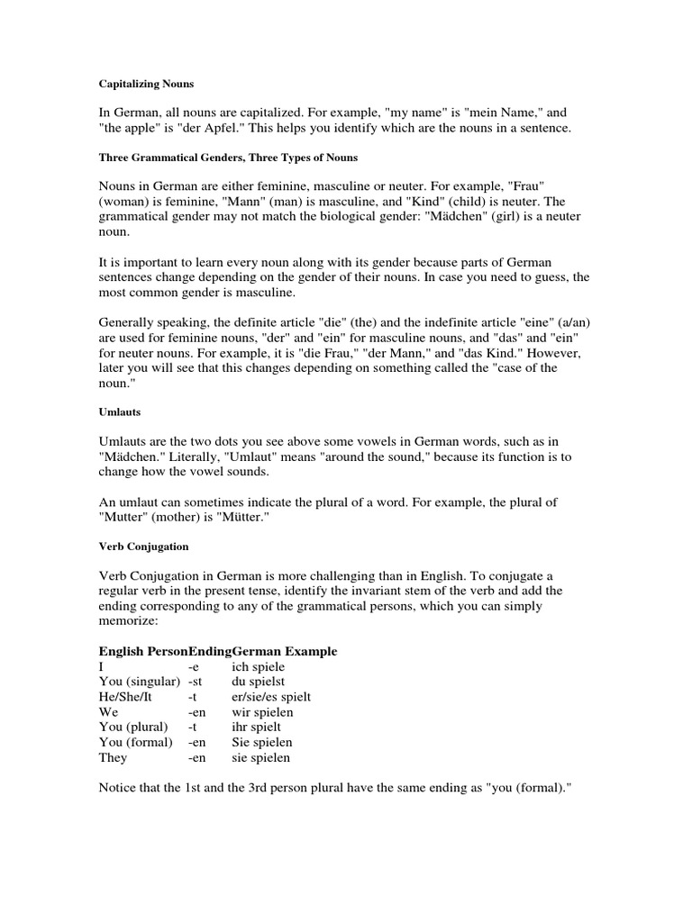 In English, making plurals out of singular nouns is typically as straightforward as adding an "s" or an "es" at the end of the word. In German, the transformation is more complex, and also the articles for each gender change. The following five suggestions can help: