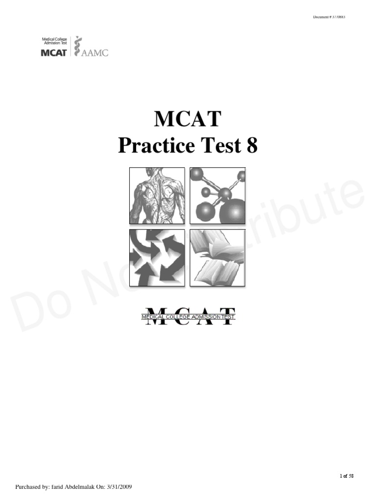 Section for the MCAT hold the copyrights to the content of this Practice Test. Therefore, there can be no