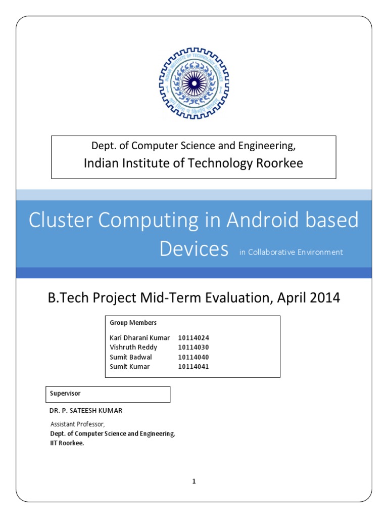 The first phase involved a deep research in cluster computing and its advantages and disadvantages. We had to find out the usage of cluster and the kind of tasks it can perform efficiently. In the next phase we did some implementation of Beowulf Cluster on our laptops and saw how significantly it could use resources to complete a set of tasks. Also we implemented our research on Android Application. The Android Application uses Wi-Fi network to communicate with the other nodes. In the next phase we will improve its functioning by adding features of automatic task assignment and then result compilation.