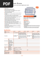 Approximately 1 second/DUT (Device Under Test) ~0-99 mins without operation Single standard 9 V battery (alkaline or carbon-zinc) or optional power adaptor 225 mVA maximum without backlight Resettable over-current protection 16 hours based on alkaline battery [ ] will appear when voltage drops below ~7.2 V 10 to 55 C, 0 to 80% R.H. 20 to 70 C, 0 to 80% R.H. without battery 0.1 (specified accuracy)/C (from 10 to 18 C or 28 to 55 C) Maximum 80% R.H. for temperature up to 30 C decreasing linearly to 50% R.H. at 55 C 337 grams with battery 184 mm x 87 mm x 41 mm In compliance with EN61010-1 (IEC61010-1:2001) for low voltage directive and Pollution Degree II Environment. Susceptibility and Emissions (EMC): Commercial Limits per EN61326-1 One-year calibration cycle recommended 3 years for main unit 3 months for standard shipped accessories