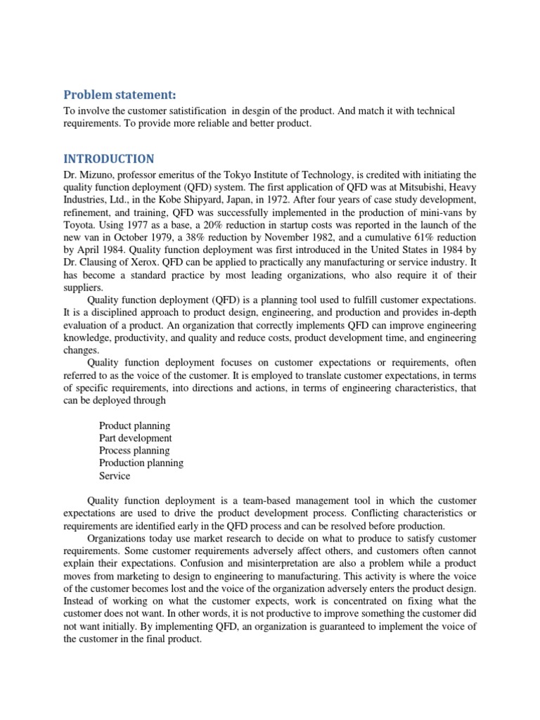 more of Japanese companies have adopted QFD to improve their quality). In the