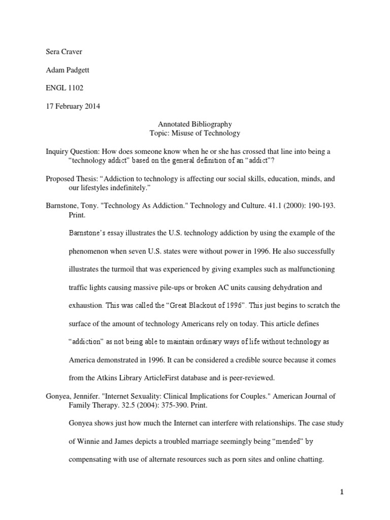Proposed Thesis: Addiction to technology is affecting our social skills, education, minds, and