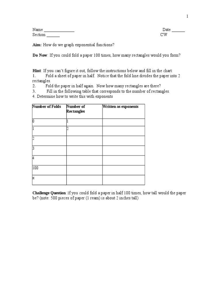 Do Now: If you could fold a paper !! times" how many rectangles would you form?
