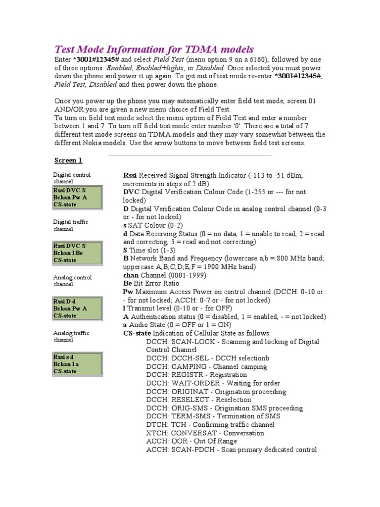 between 1 and *. !o turn off field test mode enter number +0+. !here are a total of *
