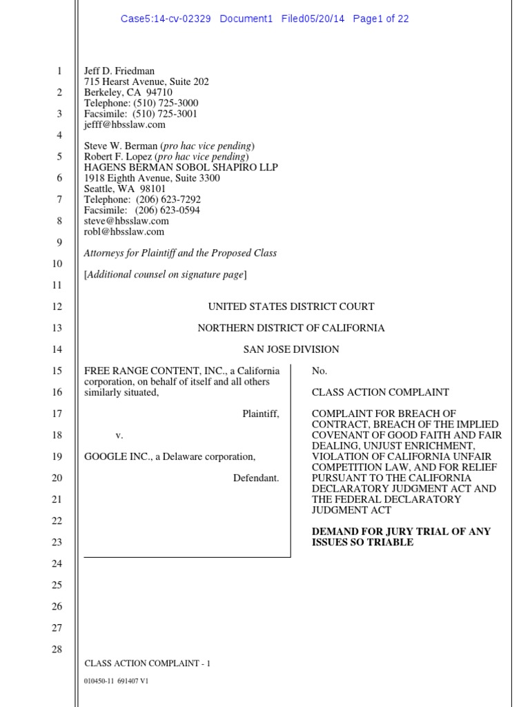 Free Range Content, Inc., a California corporation, on behalf of itself and