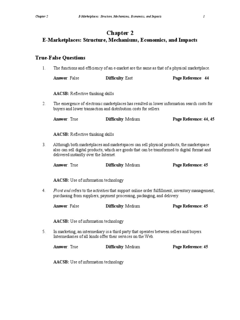 Chapter 2 E-Marketplaces: Structure, Mechanisms, Economics, and Impacts 1&