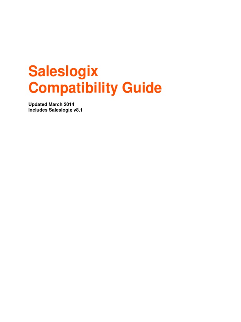 Saleslogix Compatibility Guide (March 2014) Page 2