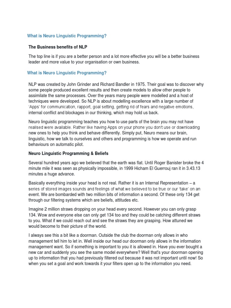 generally. These few examples illustrate the significance of NLP as a concept for personal and