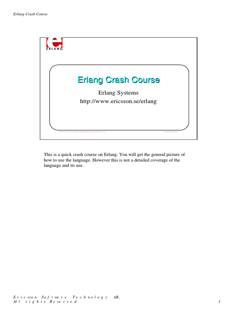 Ericsson Software Technology AB, Erlang Systems; All rights reserved Erlang Crash Course 1