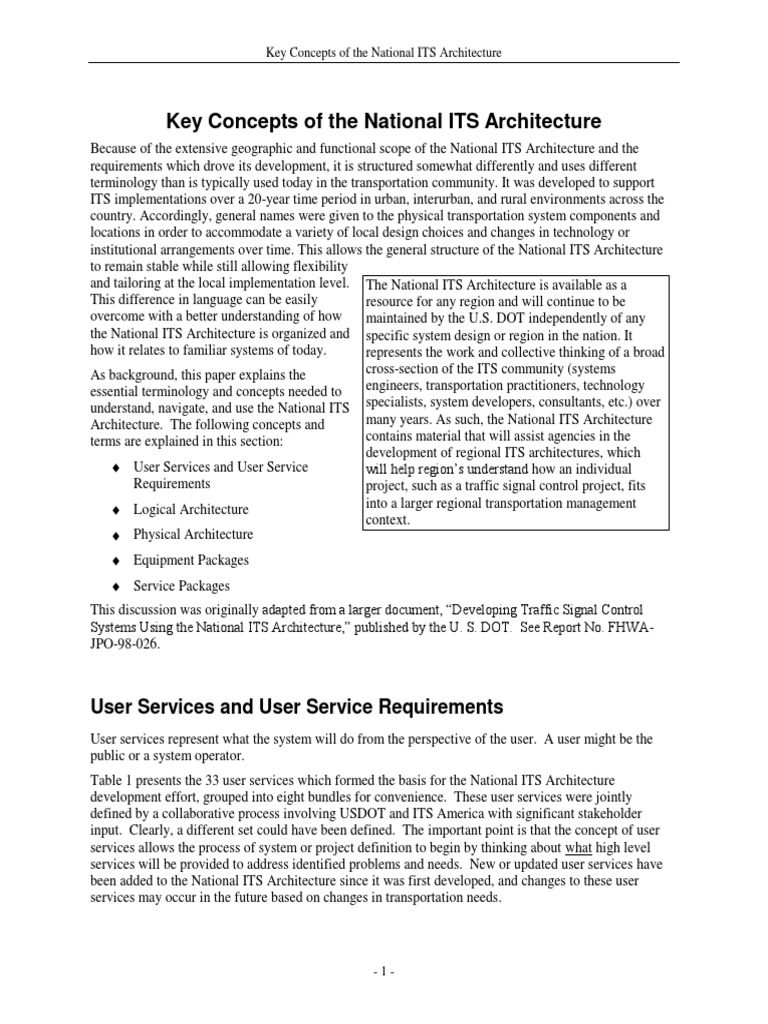 Systems Using the National ITS Architecture, published by the U. S. DOT. See Report No. FHWA-