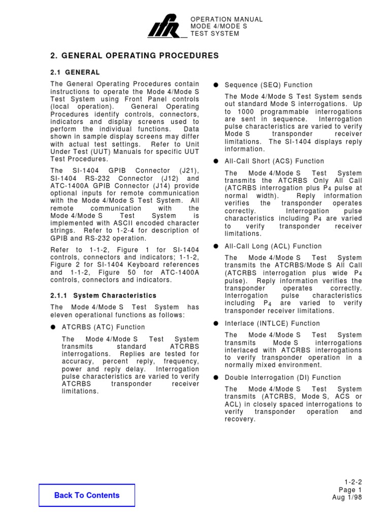 wi t h t he Mode 4/ Mode S Test Syst em. Al l
