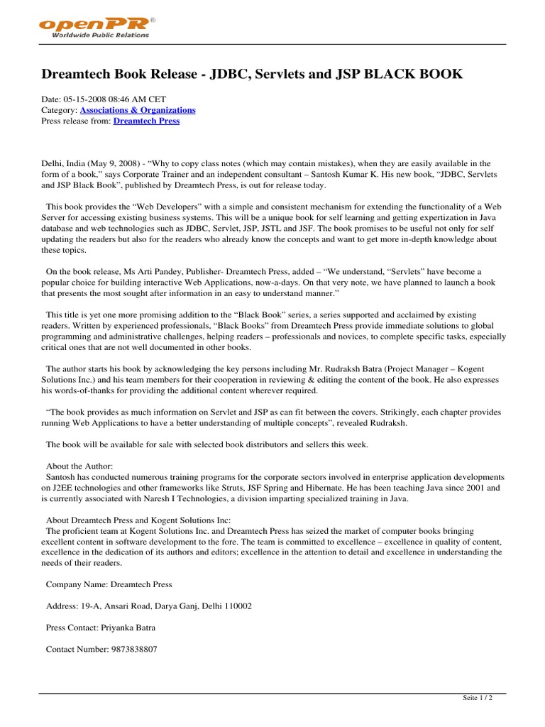 On the book release, Ms Arti Pandey, Publisher- Dreamtech Press, added We understand, Servlets have become a