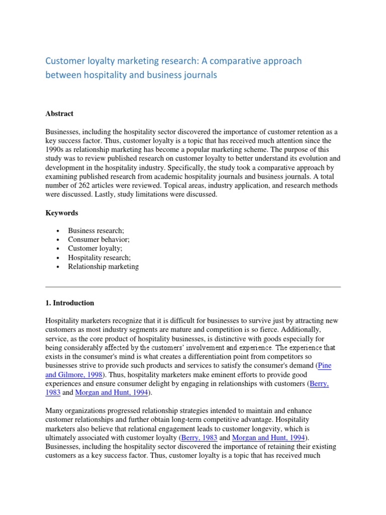 All in all, marketing research, including customer loyalty topics, in the hospitality industry has