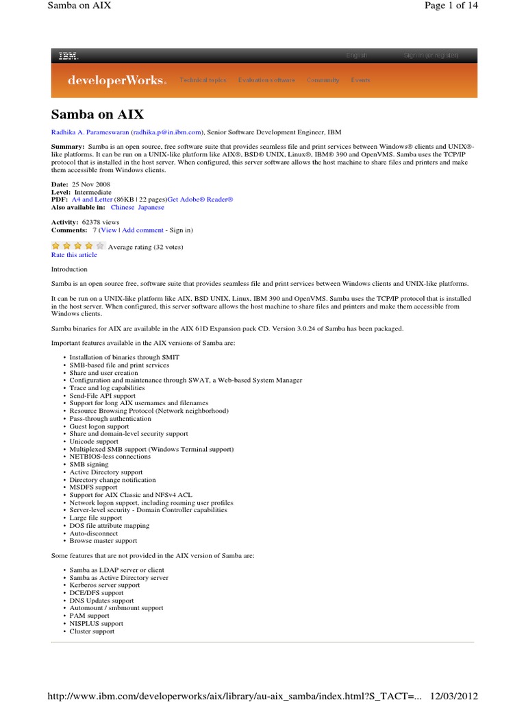 12/03/2012 http://www.ibm.com/developerworks/aix/library/au-aix_samba/index.html?S_TACT=...