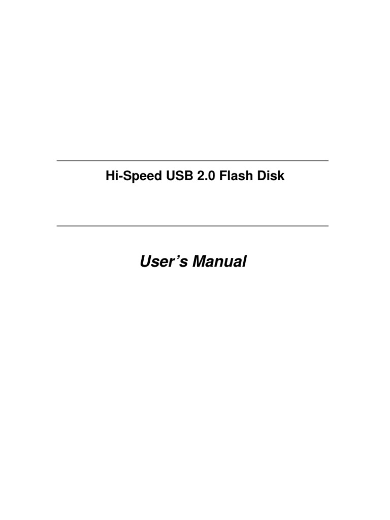 Thank you for your purchasing this Hi-speed USB 2.0 Flash Disk. This portable Plug & Play