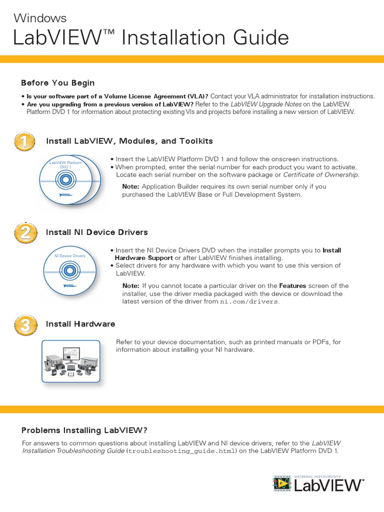 For answers to common questions about installing LabVIEW and NI device drivers, refer to the LabVIEW
