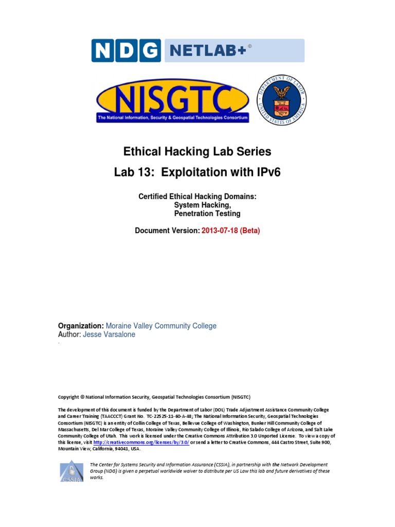 In this lab, students will learn how to use ping, scan, and exploit a system using IPv6.
