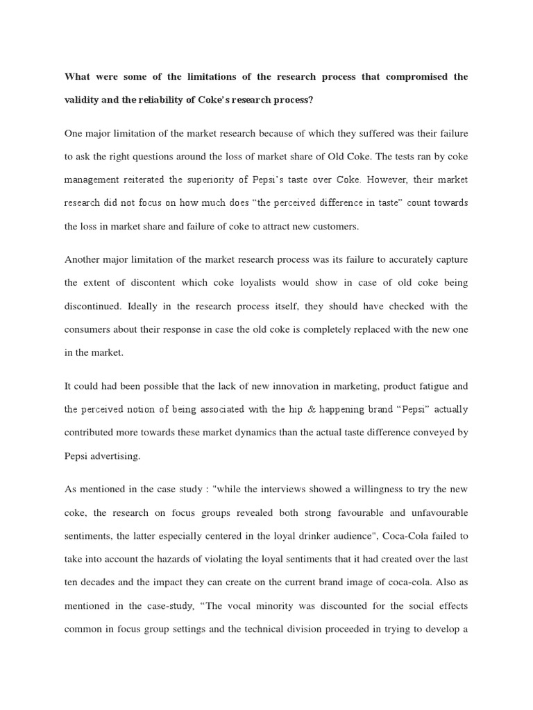 to ask the right questions around the loss of market share of Old Coke. The tests ran by coke