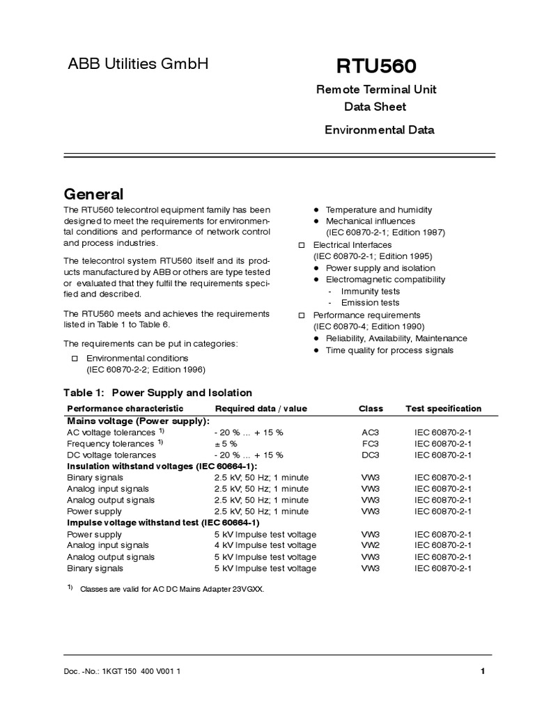 RTU560 Data Sheet Environmental Data