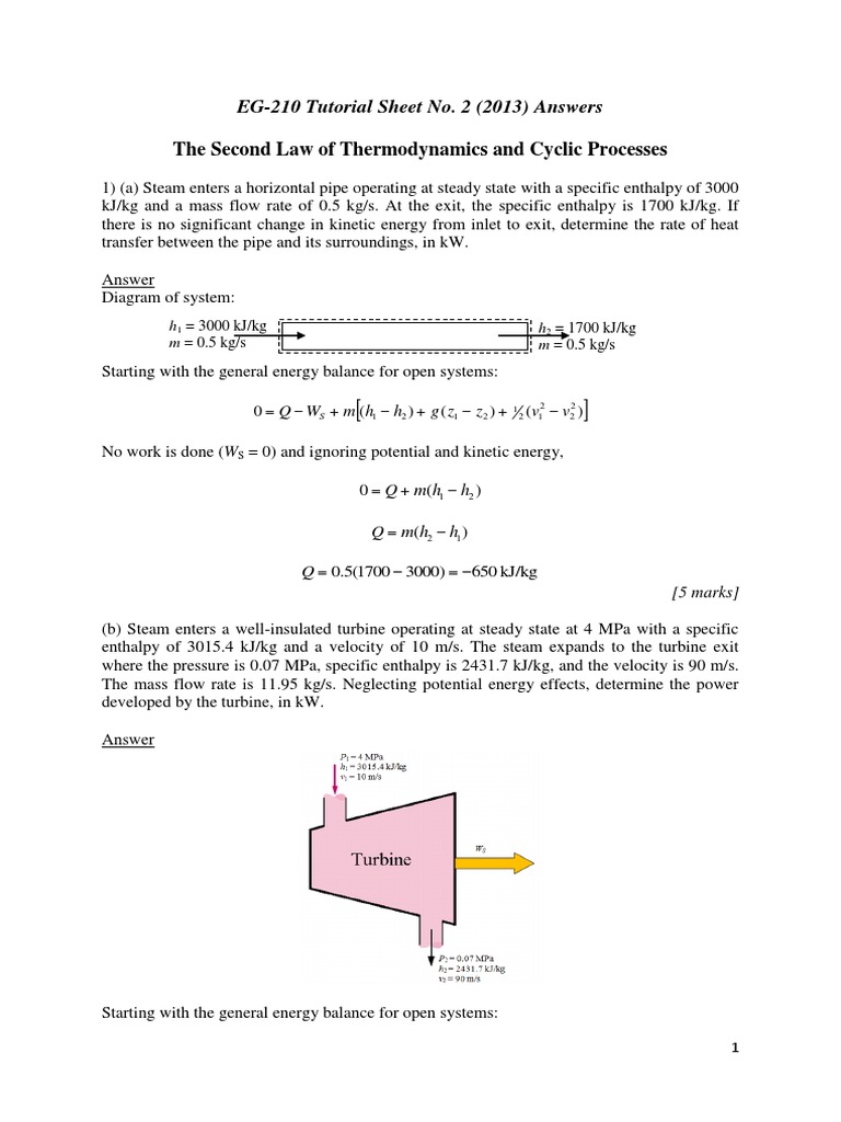 1) (a) Steam enters a horizontal pipe operating at steady state with a specific enthalpy of 3000