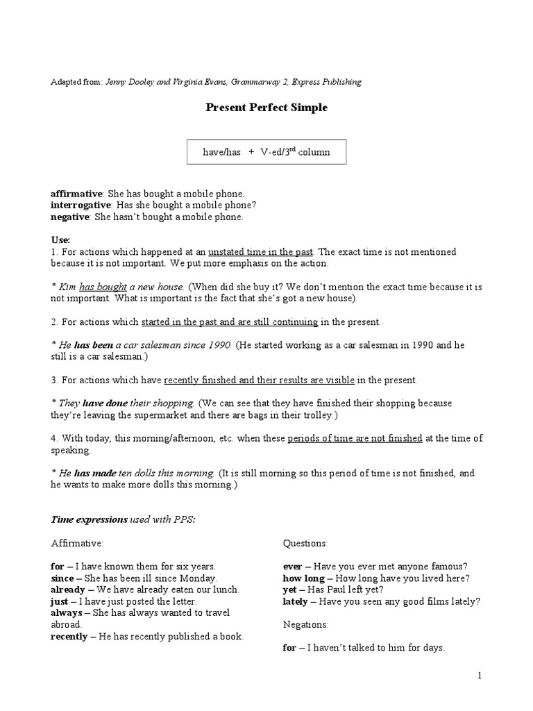 Adapted from: Jenny Dooley and Virginia Evans, Grammarway 2, Express Publishing