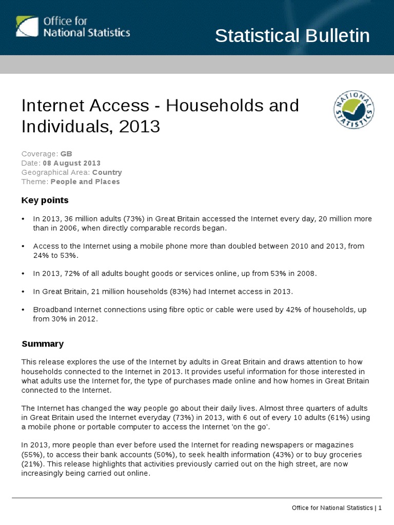 Internet Access - Households and Individuals, 2013 | 08 August 2013