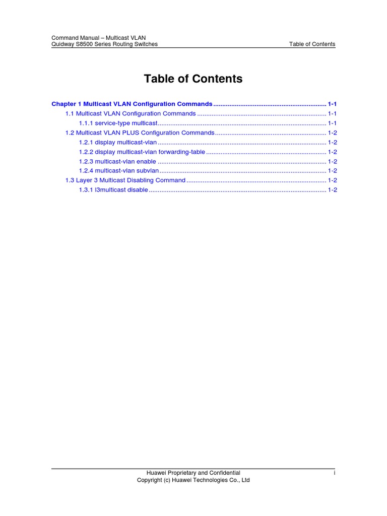 1.1 Multicast VLAN Configuration Commands ........................................................................ 1-1