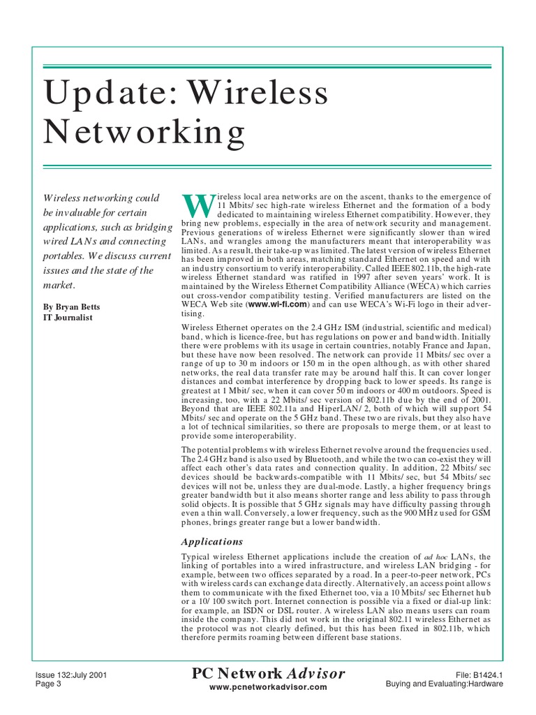 limited. As a result, their take-upwas limited. The latest version of wireless Ethernet
