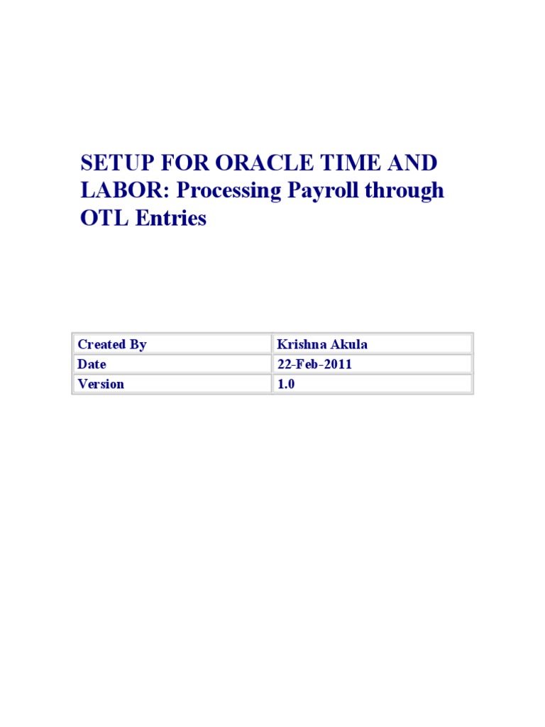 SETUP +or OTL: Processing ,ayroll throgh OTL entries