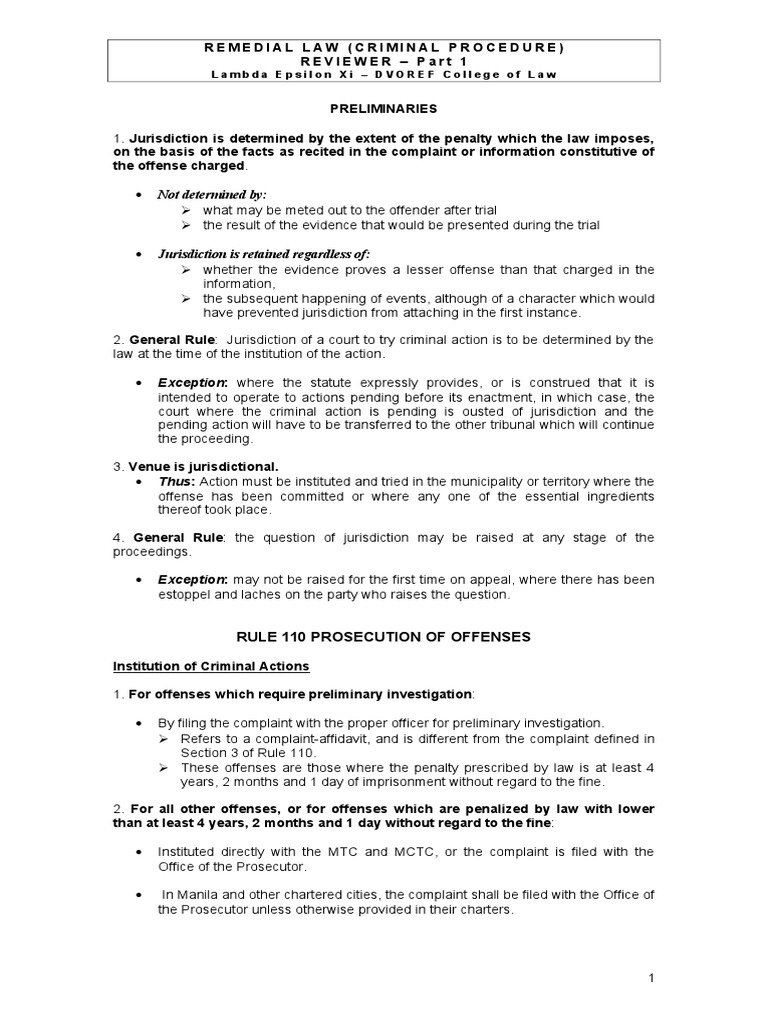 REMEDI AL L AW ( CRI MI NAL PROCEDURE)