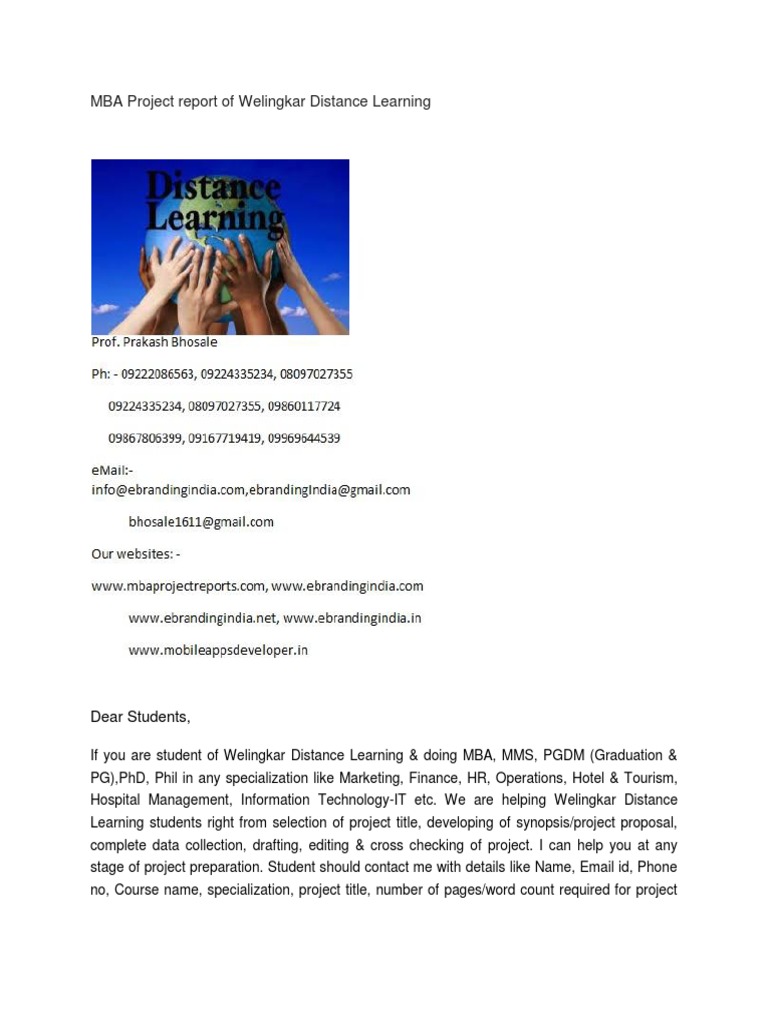 MBA Project report of Welingkar Distance Learning