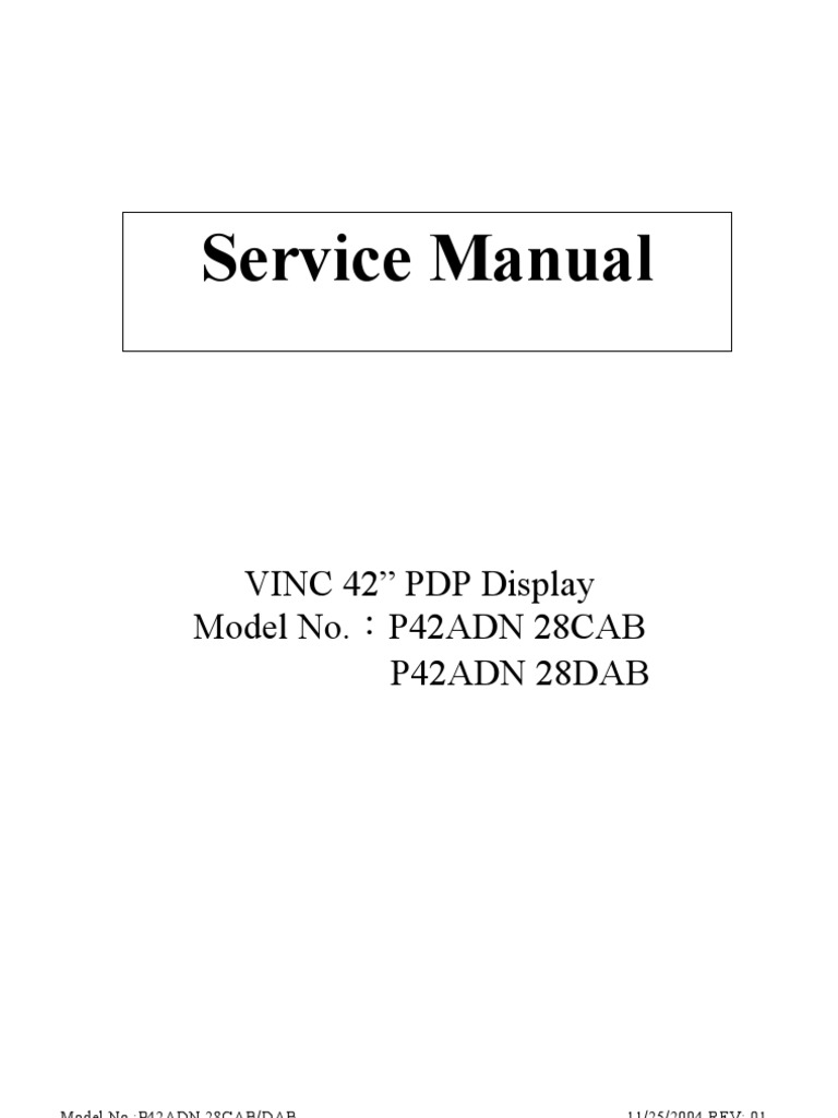 Model No.:P42ADN 28CAB/DAB II 11/25/2004 REV: 01