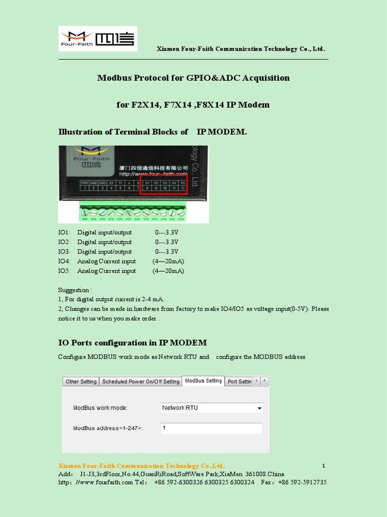 Modbus Protocol for GPIO&ADCAcquisition