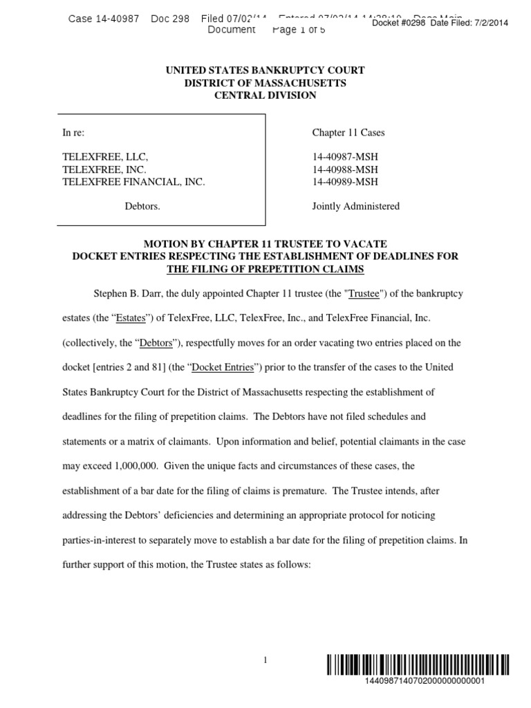 estates (the Estates) of TelexFree, LLC, TelexFree, Inc., and TelexFree Financial, Inc.