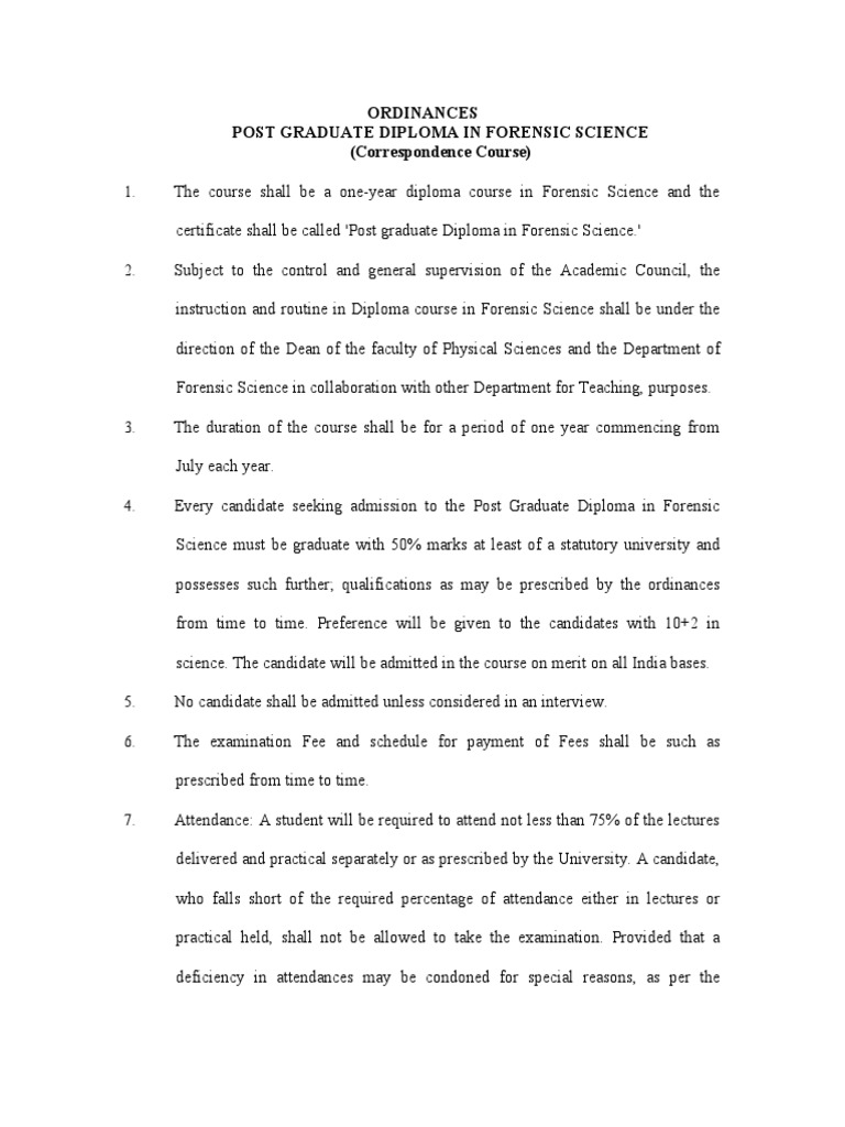instruction and routine in Diploma course in Forensic Science shall be under the