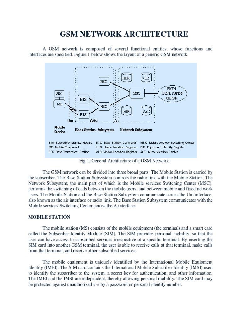 interfaces are specified. Figure 1 below shows the layout of a generic GSM network.