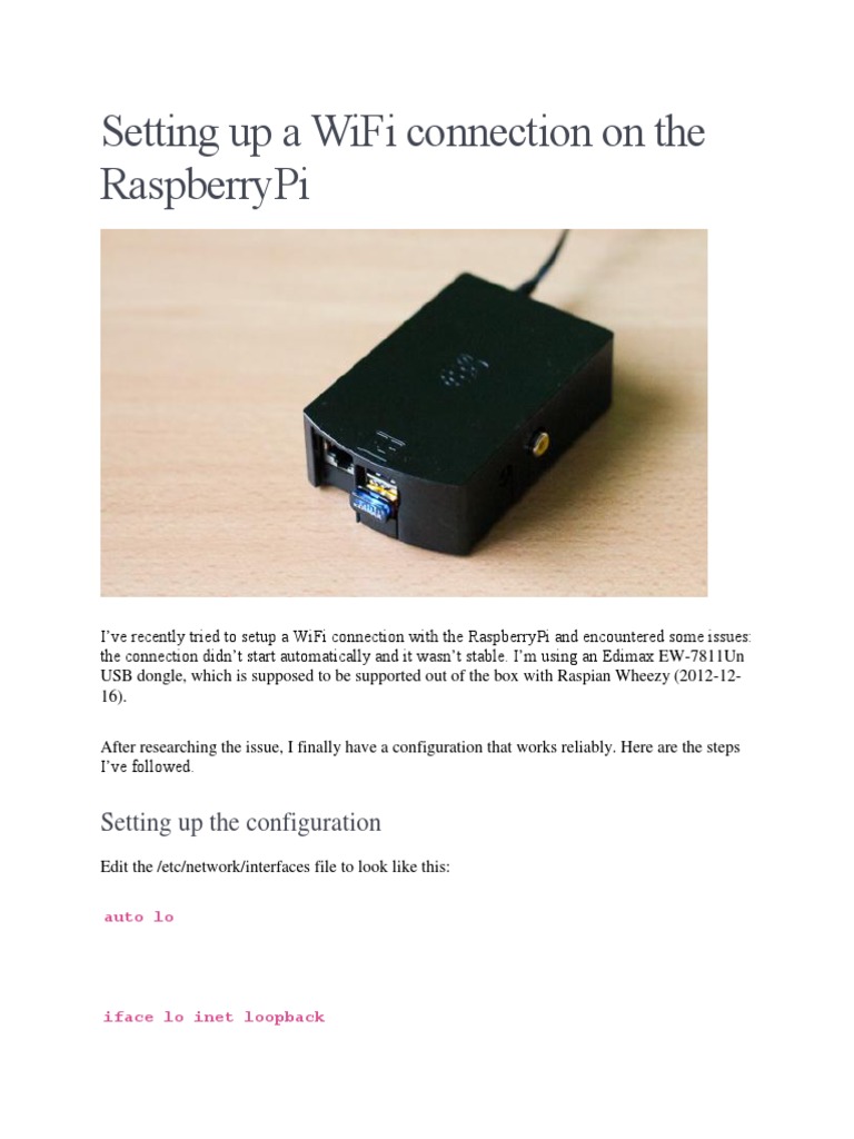 Ive recently tried to setup a WiFi connection with the RaspberryPi and encountered some issues: