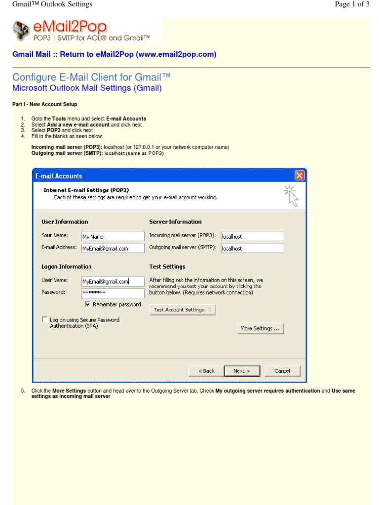 - Microsoft article on using Outlook 2002 or 2003 with a Google Gmail account.