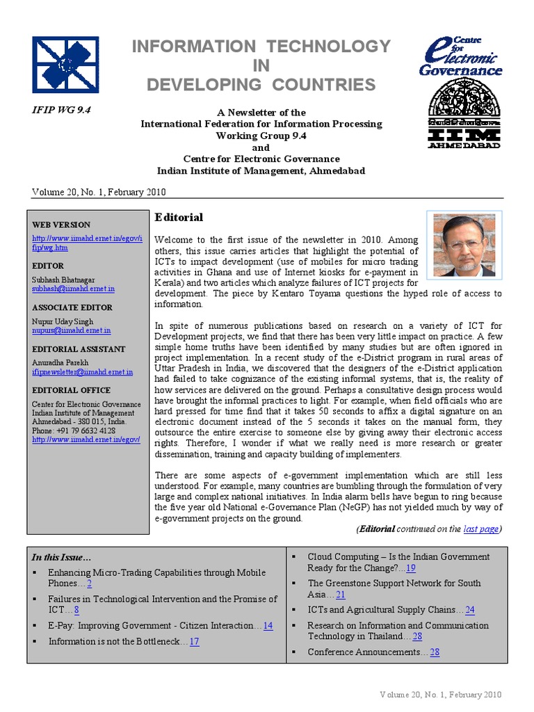 joint publication of IFIP WG 9.4 and the Centre for E-