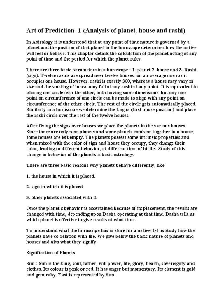 Art of Prediction -1 (Analysis of planet, house and rashi)