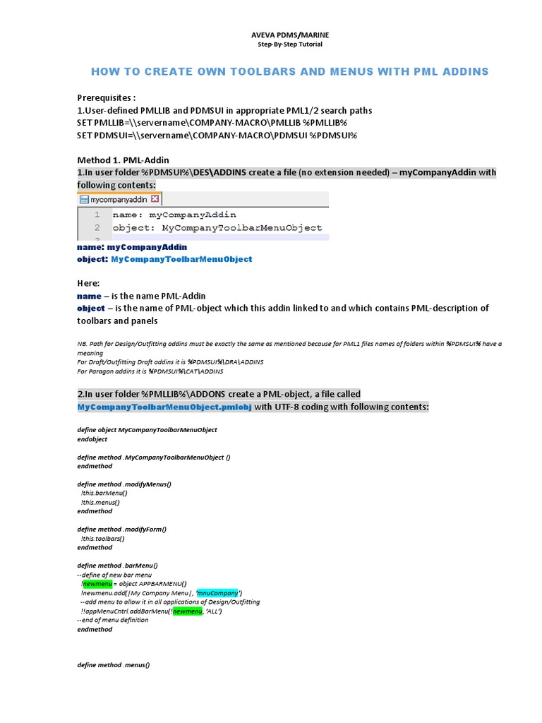 HOW TO CREATE OWN TOOLBARS AND MENUS WITH PML ADDINS