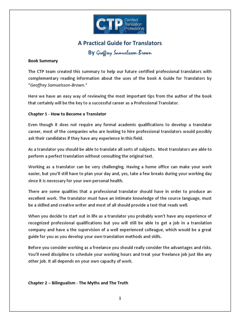 A translator should be accredited and pursue formal training as a translator and be qualified as