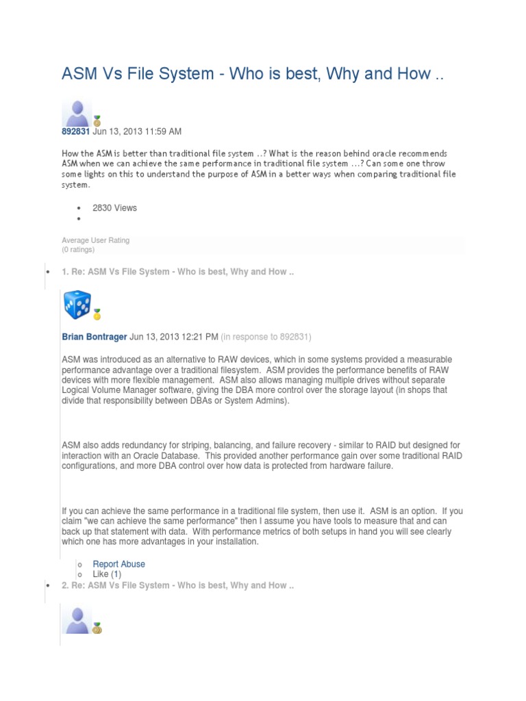 1. Re: ASM Vs File System - Who is best, Why and How ..