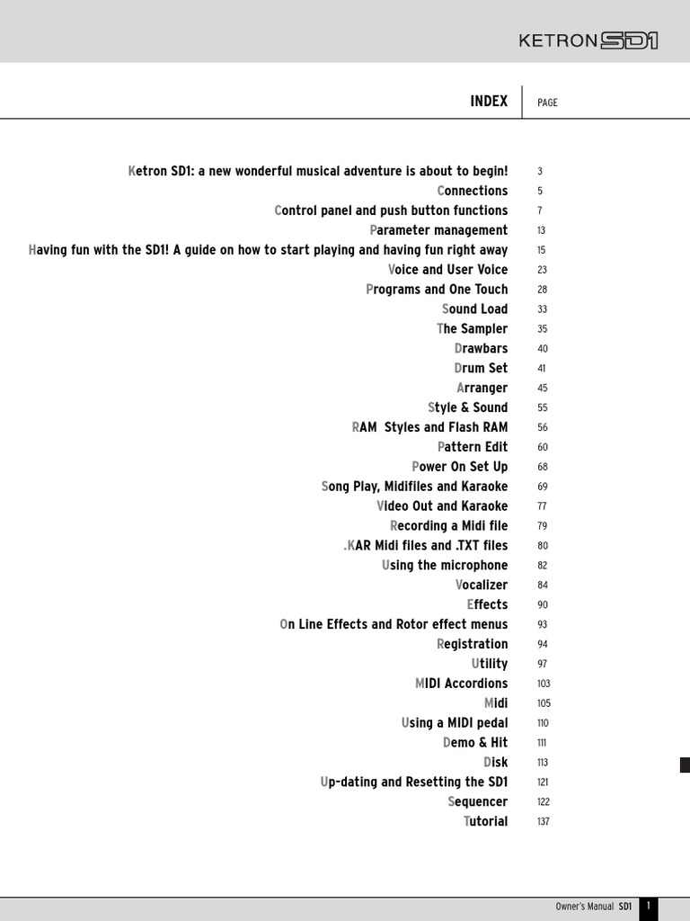 Congratulations for having purchased the new Ketron SD1 electronic keyboard. It has taken us two years of painstaking research and program-