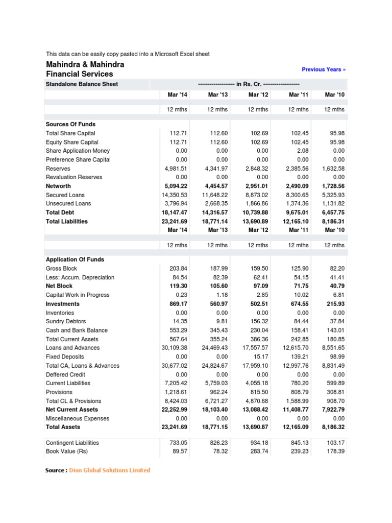 Standalone Balance Sheet