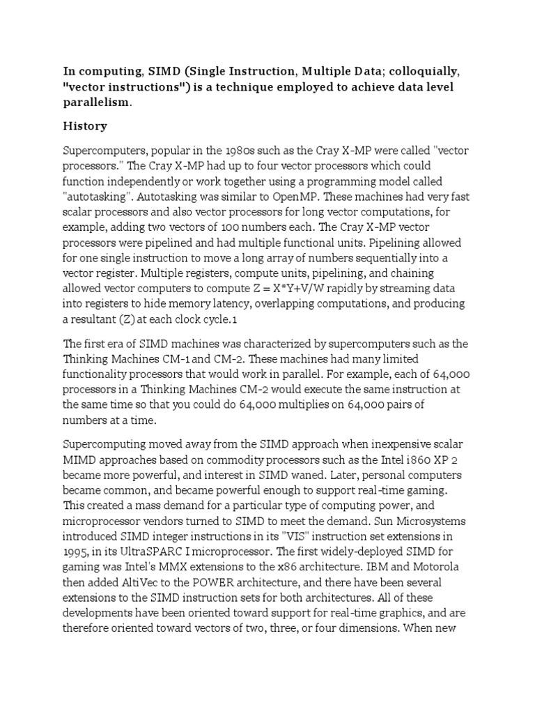 pixel", a SIMD processor will have a single instruction that effectively says "get